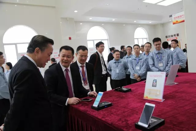 信利職員為政府領(lǐng)導(dǎo)及行業(yè)代表等介紹工廠布局及最新產(chǎn)品等